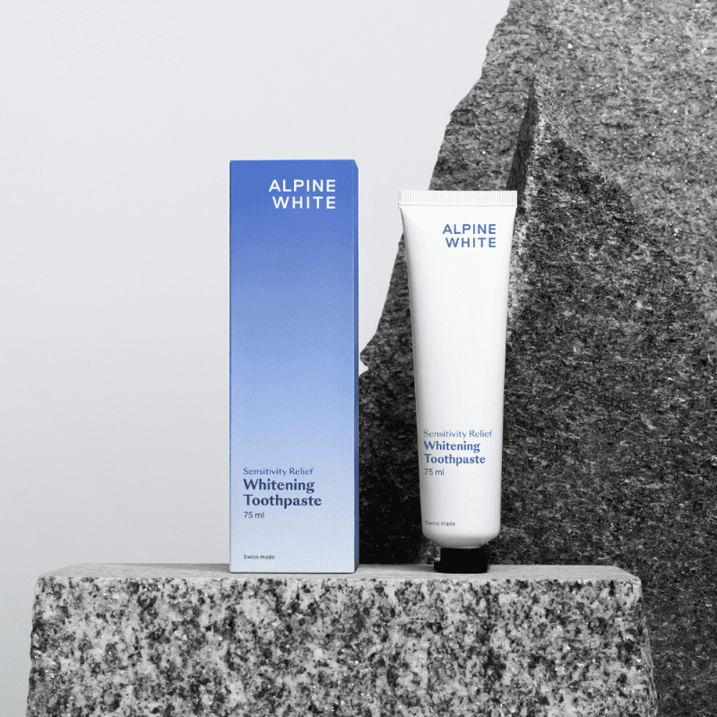 Alpine White Whitening Toothpaste Sensitivity Relief – tai balinamoji dantų pasta, skirta jautrių dantų priežiūrai. Tinka kasdieninei burnos higienai be dirginimo. Su fluoru. Skirta suaugusiems.